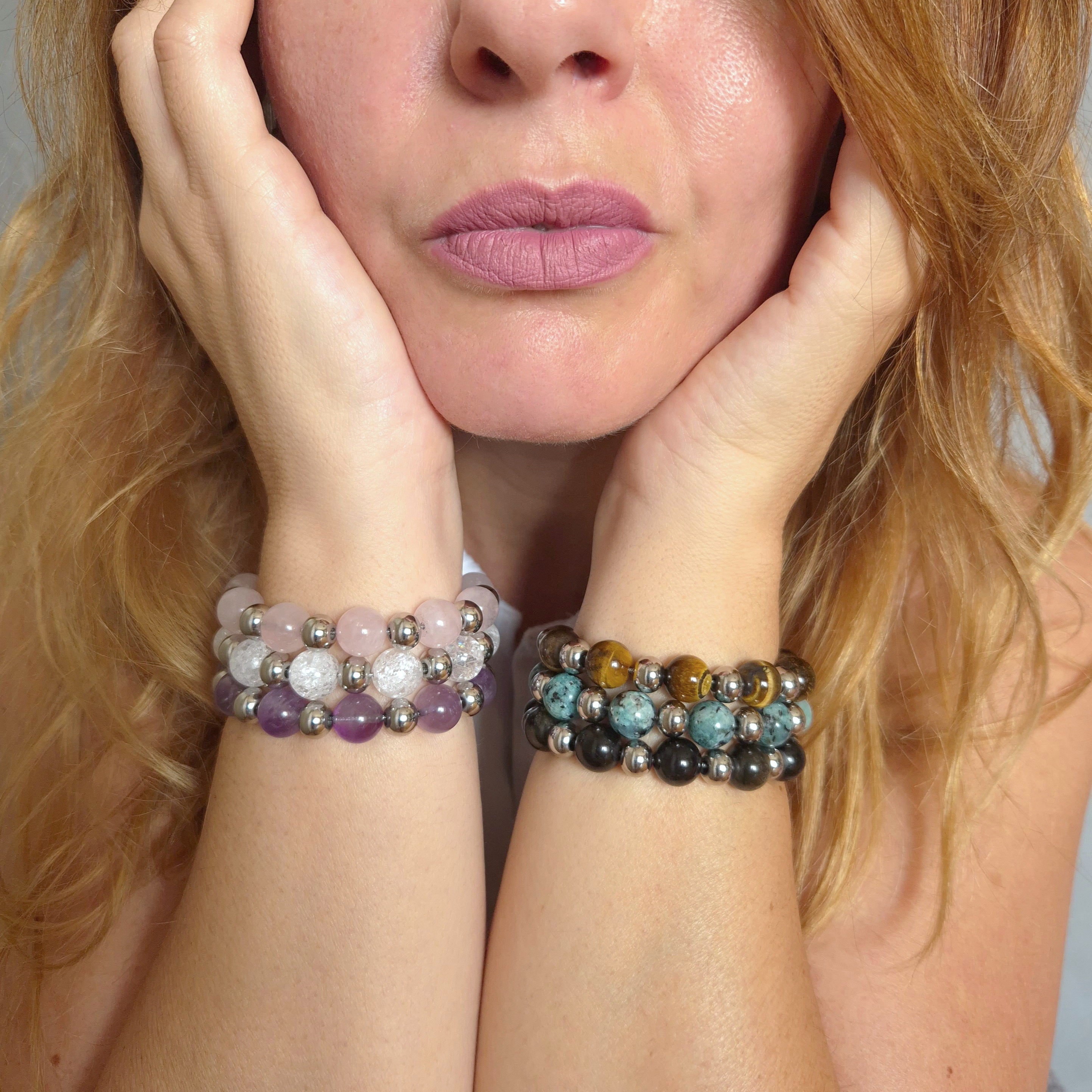 Disegnati da noi e rifiniti a mano. Indossa le energie delle pietre naturali, con cura, consapevolezza e lasciati guidare dal loro potere ogni giorno.